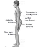 AS YOU CAN SEE FROM THE ABOVE PHOTO, LOWER-CROSSED SYNDROME (TYPE A) IS CHARACTERIZED BY AN OBVIOUS ANTERIOR PELVIC TILT (A.P.T.) AND SLIGHTLY FLEXED KNEES. AN A.P.T. SIGNIFIES TIGHT HIP FLEXORS AND LUMBAR ERECTORS WITH CONCURRENTLY WEAK ABDOMINAL MUSCLES AND GLUTEAL MUSCLES.